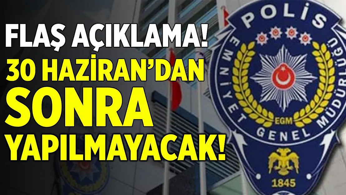 Emniyet Genel Müdürlüğü'nden son dakika açıklama! 30 Haziran sonra yapılmayacak!