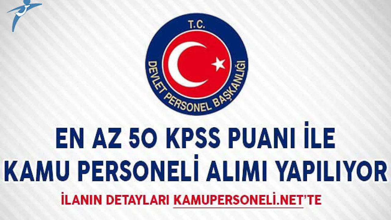 Kamupersoneli.net olarak en az 50 Kamu Personeli Seçme Sınavı notu ile kamu personeli alımı yapacağını duyuran kamu kurum ve kuruluşlarını derledik.