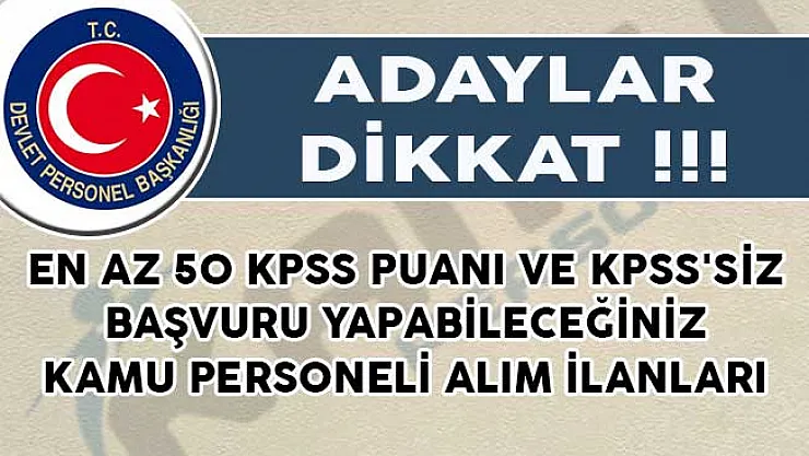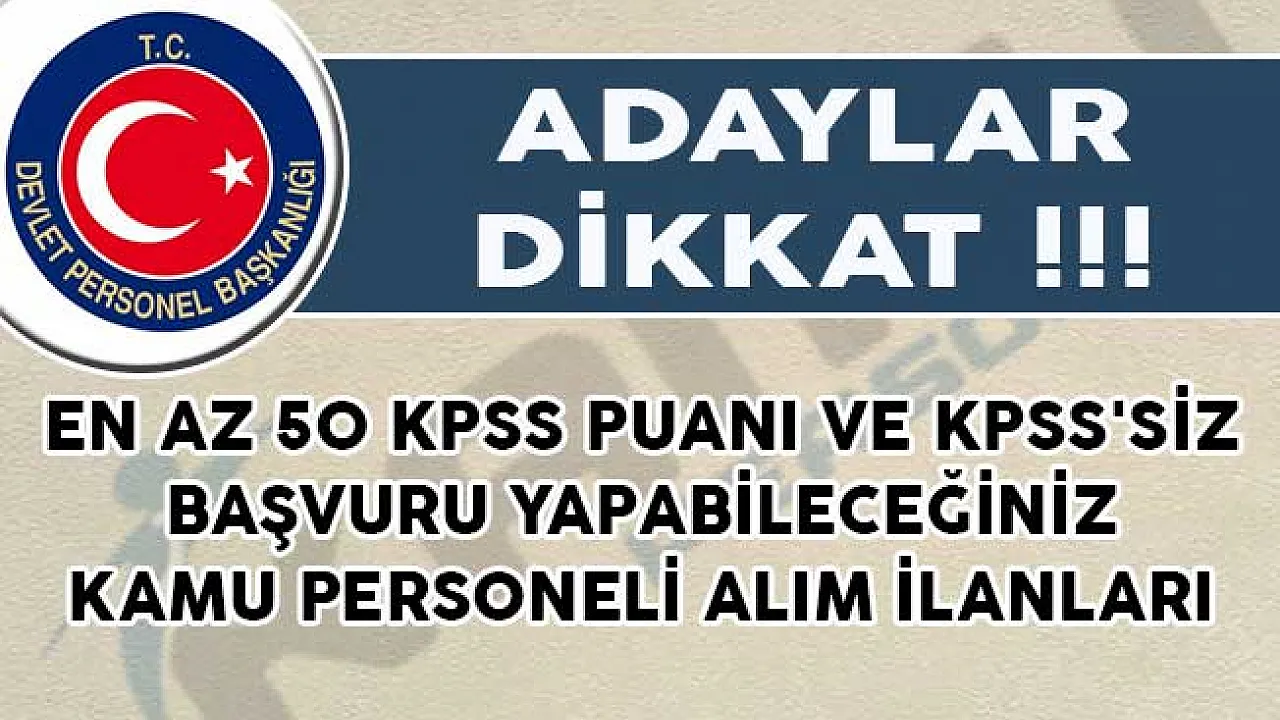 - En Az 50 KPSS Puanı ve KPSS'siz Başvuru Yapabileceğiniz Kamu Personeli Alım İlanları (DPB'de Yayımlandı)