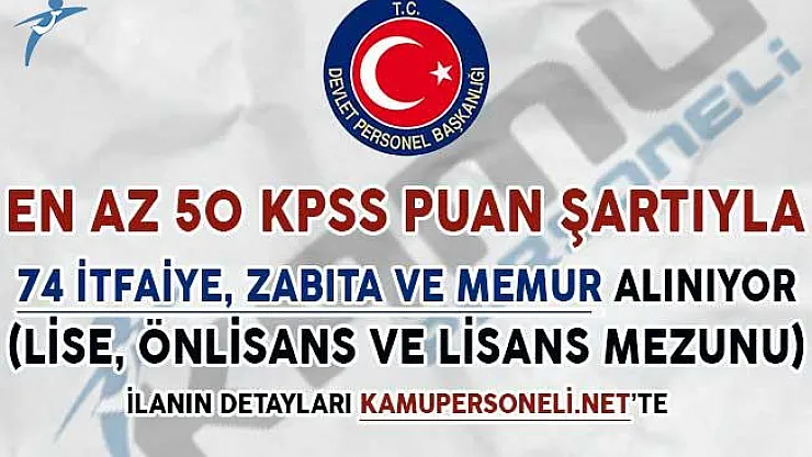 - En Az 50 KPSS Puanıyla 74 İtfaiye, Zabıta ve Memur Alımı Yapılıyor