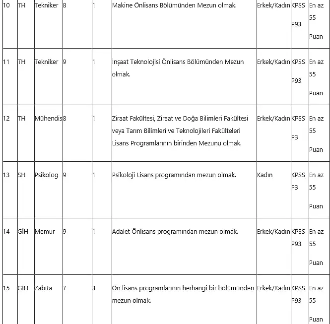 a) İlan edilen unvanlar için son olarak mezun olunan okul itibarıyla öğrenim şartını taşımak ve bu öğrenimle ilgili olarak Kamu Personel Seçme Sınavından (KPSS) alım yapılacak unvanların karsısındaki puan türlerinden, belirtilen asgari KPSS puanını almış olmak,