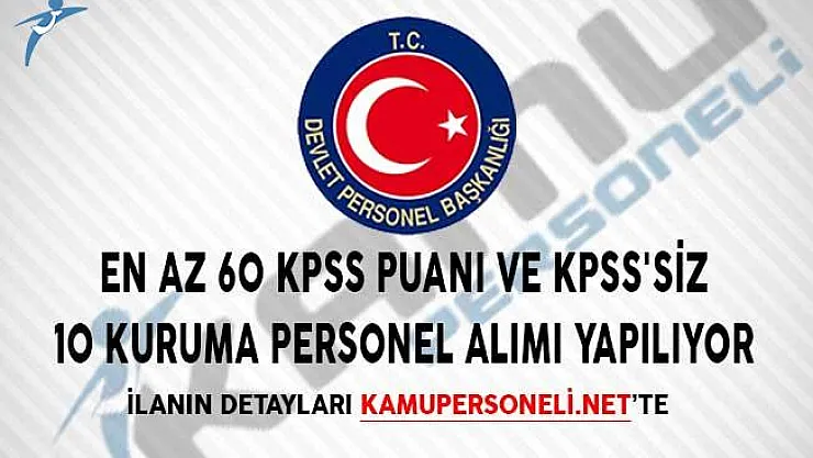 - En Az 60 KPSS Puanı ve KPSS'siz 10 Kuruma Personel Alımı Yapılıyor!