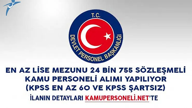 Devlet Personel Başkanlığının resmi internet sitesi üzerinden yayımlanan ilanlarla beraber 24 bin 755 sözleşmeli kamu personeli alımı yapılacağı duyuruldu.Yayımlanan ilanlara başvuruda bulunacak adayların en az lise mezunu olması gerektiği ifade edilirken