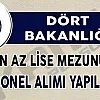 En Az Lise Mezunu Dört Bakanlığa Personel Alımı Yapılıyor !