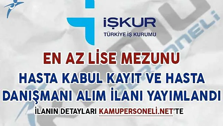 Türkiye İş Kurumu üzerinden yayımlanan ilanlar arasında Hasta Kabul-Kayıt Görevlisi kadrosu için 59, Hasta Danışmanı kadrosu için 59, Hasta Bakımı Teknisyeni kadrosu için 8, Hasta ve Yaşlı Bakım Elemanı kadrosu için 114, Hastane Hizmetlisi kadrosu için 11 ve Hastane Yönetimi Ve Organizasyonu Meslek Elemanı kadrosu için 90 personel alım ilanı bulunuyor.