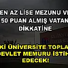 - En Az Lise Mezunu ve KPSS 50 Puan Almış Vatandaşın Dikkatine! İki Üniversite Toplam 60 Devlet Memuru İstihdam Edecek!