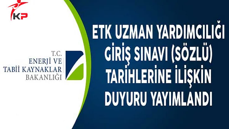 Enerji ve Tabii Kaynaklar Bakanlığı'nın web adresinde yayımlanan duyuruya göre; Enerji ve Tabii Kaynaklar Uzman Yardımcılığı giriş sınavına hak kazanan adaylara ilişkin açıkama yapıldı. Söz konusu duyuruda; uzman yardımcılığı giriş sınavına hak kazanan adaylara yönelik olarak giriş sınavı tarihleri belli oldu.