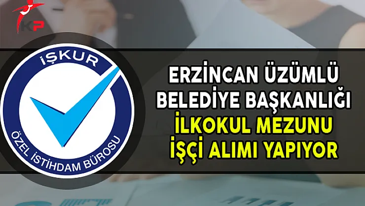 - Erzincan Üzümlü Belediye Başkanlığı İlkokul Mezunu İşçi Alımı Yapıyor