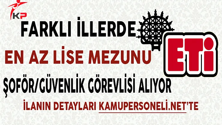 - ETİ En Az Lise Mezunu Güvenlik Görevlisi ve Şoför Alımı Yapıyor