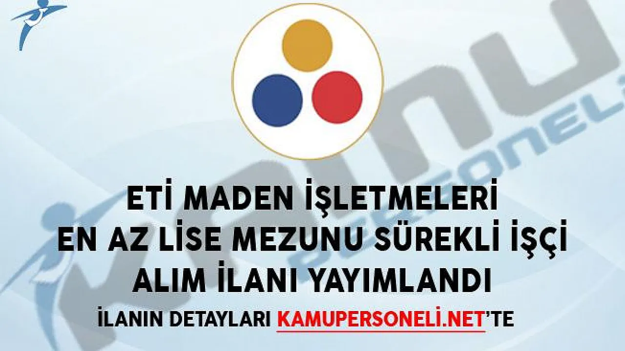 - ETİ Maden İşletmeleri Genel Müdürlüğü En Az Lise Mezunu Sürekli İşçi Alım İlanı Yayımlandı