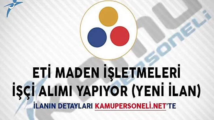Kamupersoneli.net olarak ETİ Maden İşletmeleri Genel Müdürlüğü tarafından yayımlanan işçi alım ilanını sizler için derledik.