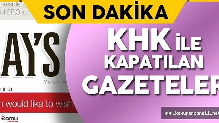 FETÖ ile bağlantılı olduğu gerekçesiyle KHK ile kapatılan gazeteler Resmi Gazete'de yayımlandı.Millet, Bugün, Meydan, Özgür Düşünce, Taraf, Yarına Bakış, Yeni Hayat, Zaman ve Today's Zaman gazetelerinin yanı sıra kapatılan yerel gazeteler ise şöyle: 'Adan