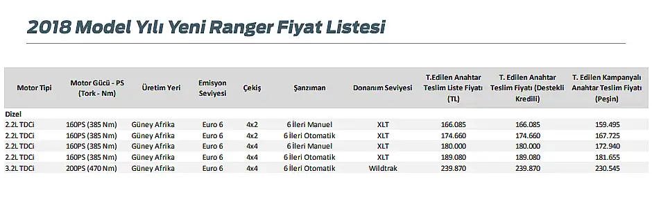 Yeni Ford Transit Custom 2018 Model Fiyat Listesi