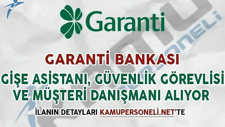 - Garanti Bankası Güvenlik Görevlisi, Müşteri Danışmanı ve Gişe Asistanı Alım İlanı Yayımladı
