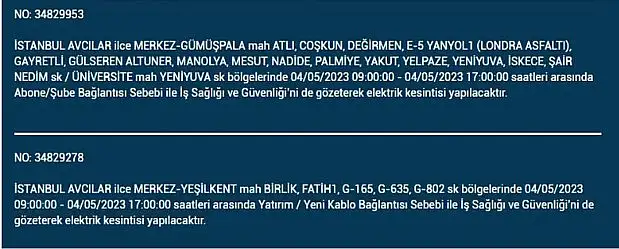 4 MAYIS BEDAŞ ELEKTRİK KESİNTİSİ