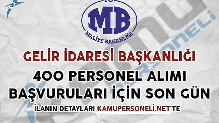 - Gelir İdaresi Başkanlığı 400 Personel Alımı Başvuruları İçin Son Gün