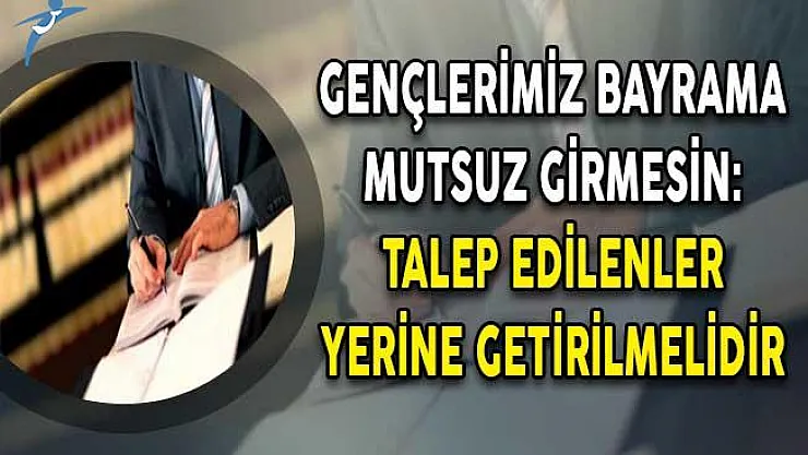 - Gençlerimiz Bayrama Mutsuz Girmesin: Talep Edilenler Yerine Getirilmelidir