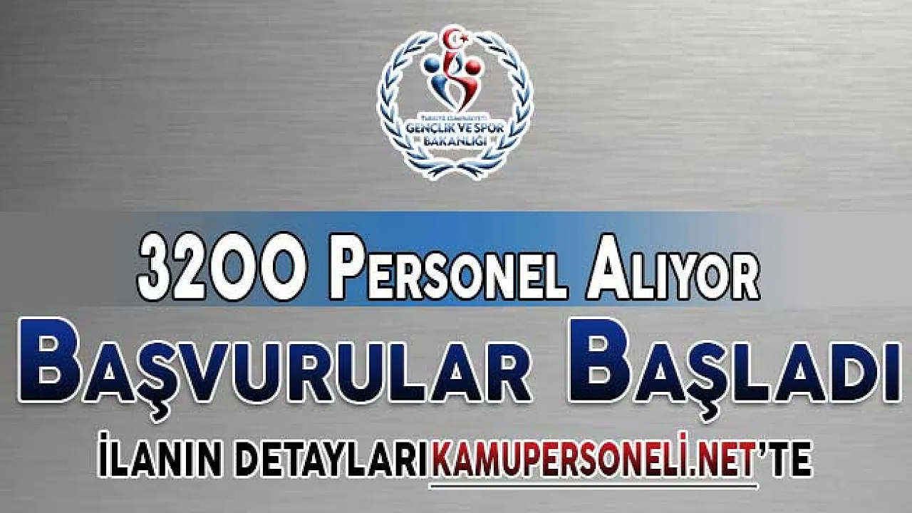 - Gençlik ve Spor Bakanlığı 3 bin 200 Kamu Personeli Alımı Yapıyor ! Başvurular Başladı