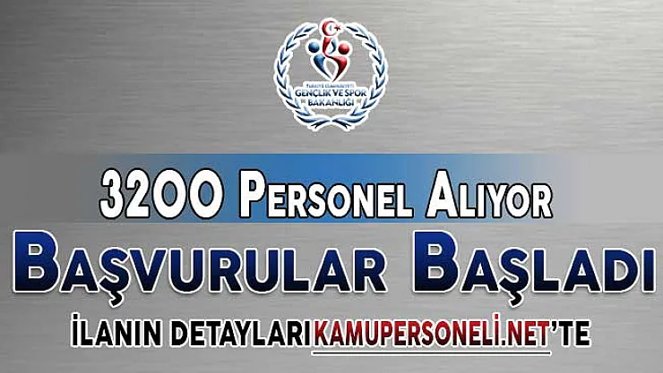 Gençlik ve Spor Bakanlığı tarafından bir ilan yayımlanmış ve yayımlanan ilanda 3 bin 200 kamu personeli alımı yapılacağı ifade edilmişti. Söz konusu personel alım ilanına başvurular bugün itibari ile başladı. Söz konusu ilan hakkında tüm detayları kamupersoneli.net olarak okuyucularımızla paylaşıyoruz.