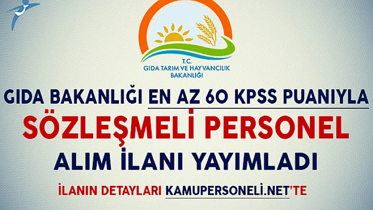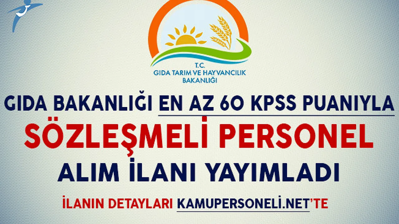 - Gıda Bakanlığı En Az 60 KPSS Puanıyla Sözleşmeli Personel Alım İlanı Yayımladı