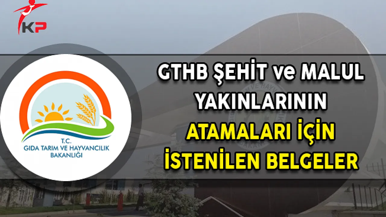 Gıda, Tarım ve Hayvancılık Bakanlığı, resmi sitesinde yayımladığı duyuru ile şehit ve malul yakınlarının açıktan atanabilmeleri için gereken belgeleri açıklandı.