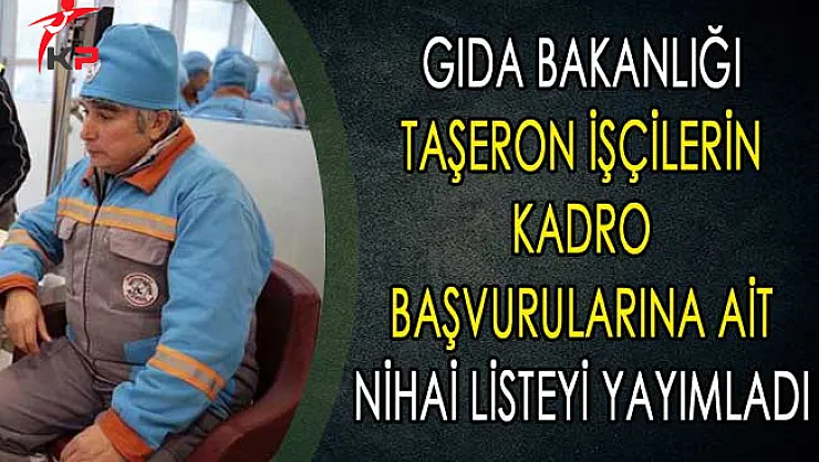 GIDA BAKANLIĞI TAŞERON İŞÇİLERİN KADRO BAŞVURU SONUÇLARINI AÇIKLADI