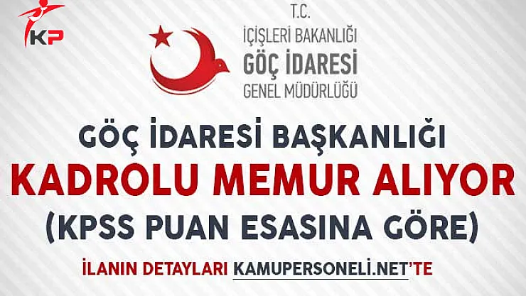 - Göç İdaresi Başkanlığı Kadrolu Memur Alıyor (KPSS Puan Esasına Göre)