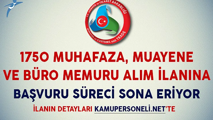 - Gümrük Bakanlığı 1750 Muhafaza, Muayene ve Büro Memuru Alım İlanı İçin Başvuru Süreci Sona Eriyor