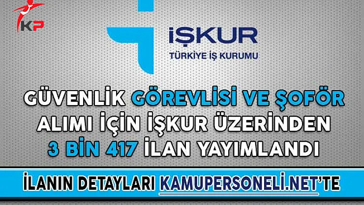 - Güvenlik Görevlisi ve Şoför Alımı İçin İşkur Üzerinden 3 Bin 417 İlan Yayımlandı