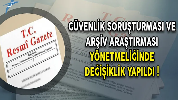Güvenlik Soruşturması ve Arşiv Araştırması Yönetmeliğinde Değişik Yapılmasına Dair Yönetmelik" kapsamında değişiklikler yapıldı.