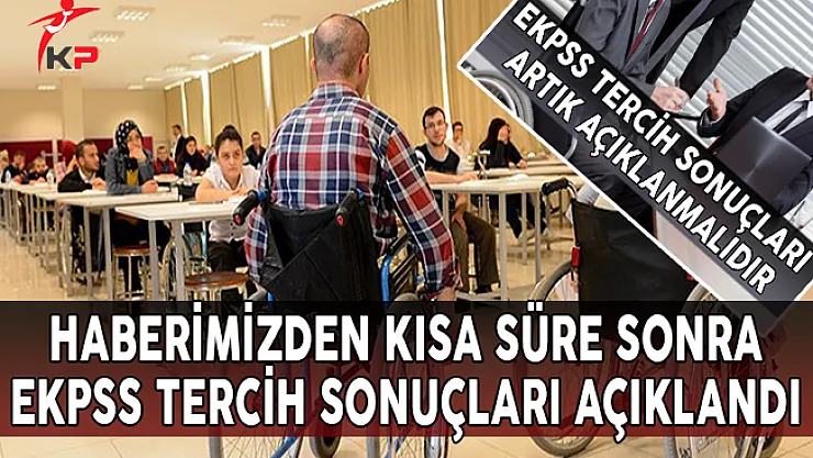 EKPSS TERCİH SONUÇLARI AÇIKLANDI Kamupersoneli.net olarak yaptığımız 'Sayın Yetkililer! EKPSS Tercih Sonuçları Artık Açıklanmalıdır' başlıklı haberimizden sonra.
