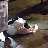 Olay dün gece, merkez Antakya ilçesindeki Tabakhane Caddesi'nde meydana geldi.Caddede temizlik işi yapan belediye çalışanları, çöp konteynerinin yanına bırakılan çuvalı almak istedi.