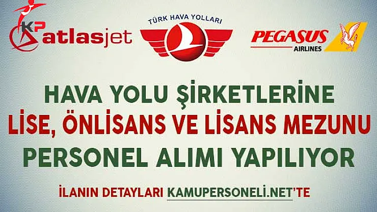 Türk Hava Yolları, Pegasus Hava Yolları ve Atlasjet Havacılık A.Ş tarafından yayımlanan personel alım ilanlarına çeşitli eğitim seviyelerinden mezun adaylar başvuru yapabilecekler.