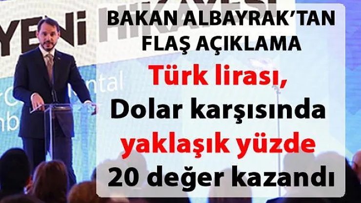 Berat Albayrak, ağustos ayı sonundan bu yana Türk lirasının, ABD doları karşısında yaklaşık yüzde 20 değer kazandığını, bu dönemde diğer gelişmekte olan ülke para birimlerine kıyasla en çok değer kazanan para birimi olduğunu aktardı.
