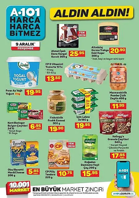 A101’in resmi sitesinde yayımlanan 9 Aralık A101 aktüel ürünler kataloğuna göre birçok üründe indirime gidildi. Katalogda en dikkat çeken ürün ise yumurta, yoğurt ve labnede büyük kampanya yapıldı.