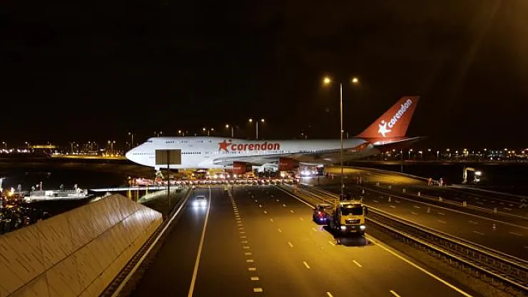Dünyanın en büyük uçaklarından biri olan 170 ton ağırlığındaki Boeing 747 tipi uçağın, ülkenin işlek yollarından biri olan A9 otoyolundan geçişiyle transferin ikinci aşaması tamamlandı.