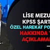 Bilindiği gibi son çıkan KHK ile birlikte özel harekat polisi istihdamındaki bazı şartlarda değişikliğe gidilmiş, KPSS şartı kaldırılmış, lise mezunlarının da özel harekat polisi alım ilanlarına başvuruda bulunabilmelerine imkan tanınmıştı.