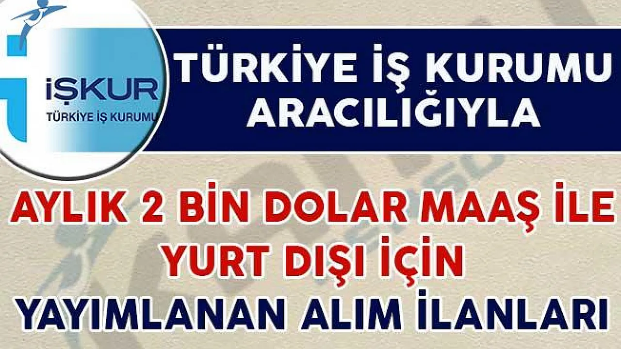 Bu haberimizde de siz okuyucularımıza İŞKUR üzerinden yayımlanan yurt dışı iş imkanlarını siz okuyucularımızla buluşturuyoruz. Bu iş imkanlarında maaşlar değişmekte olup 2 bin dolar seviyesine kadar çıkabiliyor. İşte detaylar,