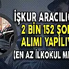 İşveren ile işçi arasında köprü olan İşkur ile farklı il ve pozisyonlarda işçi alımları devam ediyor.Kamu kurumları ve özel sektör firmaları, İşkur üzerinden yayımladıkları ilanlar ile 2152 şoför alımı yapacaklarını açıkladılar.