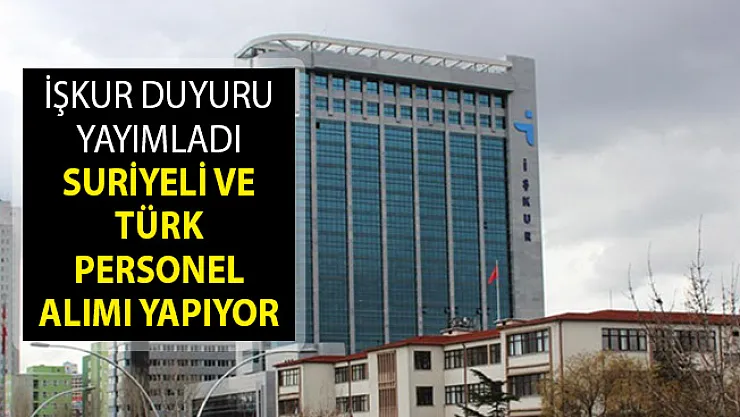 - İŞKUR Duyuru Yayımladı! Suriyeli ve Türk Personel Alımı Yapıyor