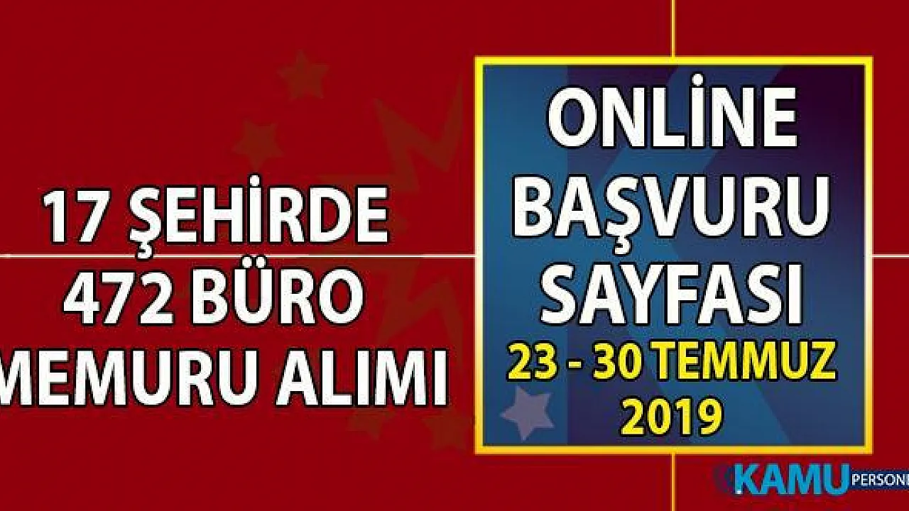 Türkiye İş Kurumu ( İŞKUR ) 23 Temmuz 2019 tarihi itibariyle yayınlamış olduğu iş ilanları na göre 15 şehirde toplam 472 büro memuru alımı yapılacaktır.Başvuru lar başlamış olup son başvuru tarihi her bir ilan için farklı olmakla birlikte 16 Ağustos 2019