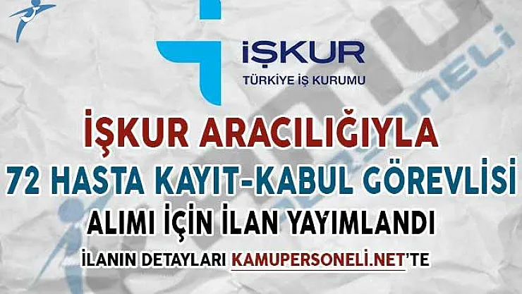 Türkiye İş Kurumu'nun internet sitesi üzerinden yayımlanan ilanlar arasında 72 Hasta Kabul-Kayıt Görevlisi alımı için ilan bulunuyor.