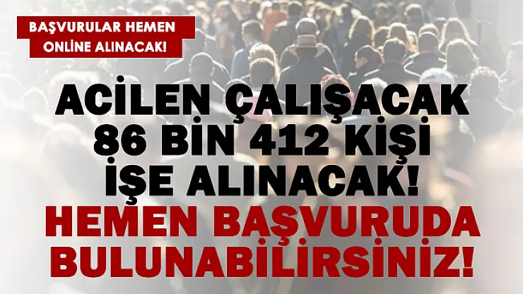 Acilen çalışacak 86 bin 412 kişi aranıyor. İlkokul, ortaokul, lise ve üniversite mezunları arasından yapılacak alımlara dair şartlar ve koşullar şu şekilde açıklandı: