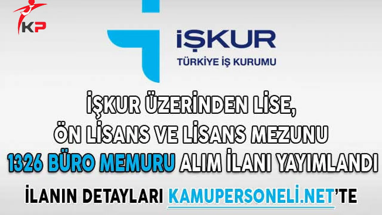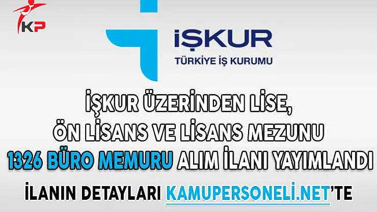 - İşkur Üzerinden Lise, Ön Lisans ve Lisans Mezunu 1326 Büro Memuru Alım İlanı Yayımlandı