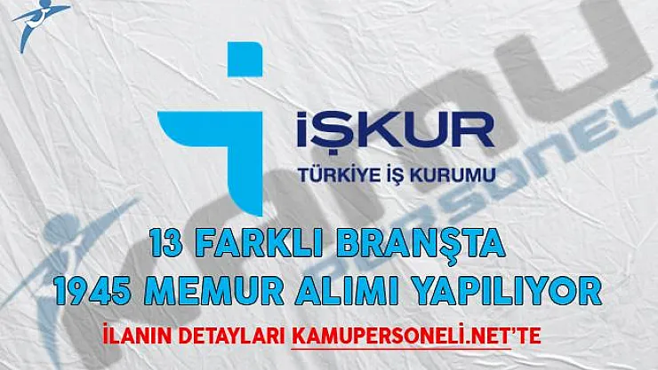 - İŞKUR'da Yayımlandı! 13 Farklı Branşta 1945 Memur Alımı Yapılıyor