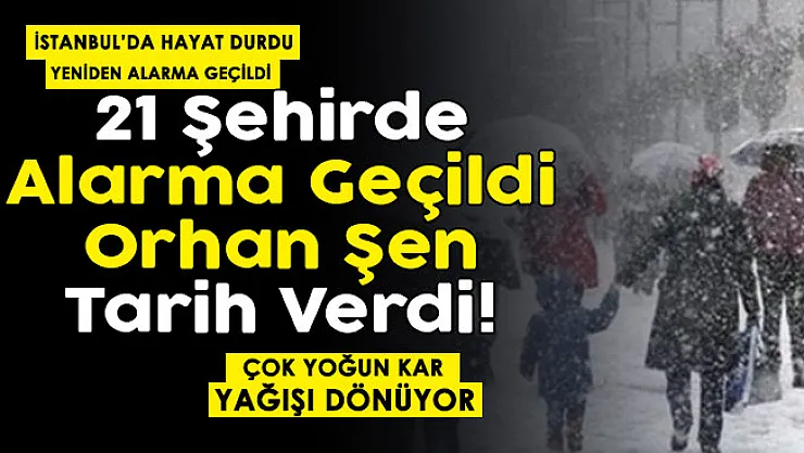 Meteoroloji Genel Müdürlüğünden son dakika açıklaması yapılırken çok sayıda il için sarı uyarı yapılan açıklamaya göre birçok ilde yoğun kar yağışı beklendiği paylaşıldı. İstanbul'da hayatı durma noktasına getiren kar yağışı megakente geri döneceği belirtilirken Meteoroloji uzmanı Orhan Şen tarih vererek çeşitli uyarlar yaptı.