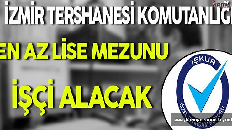 İzmir Tershanesi Komutanlığı, İşkur aracılığıyla bir ilan verdi.İlana göre, Tershane Komutanlığı bünyesinde görevlendirilmek üzere en az lise mezunu işçi alınacak.
