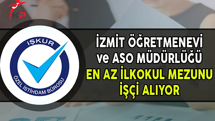 - İzmit Öğretmenevi ve ASO Müdürlüğü En Az İlkokul Mezunu İşçi Alımı Yapıyor