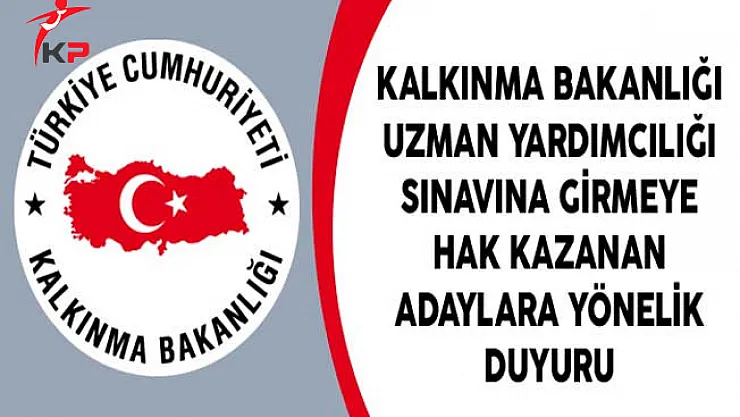 - Kalkınma Bakanlığı Uzman Yardımcılığı Sınavına Girmeye Hak Kazanan Adaylara Yönelik Duyuru