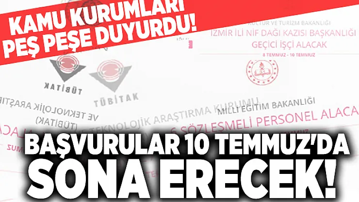 - Kamu kurumları peş peşe duyurdu! Başvurular 10 Temmuz'da sona erecek!